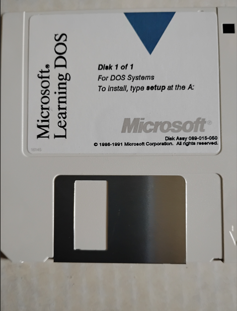 Microsoft Learning DOS 3.00 release one 3.5 720k floppy disk. Time date 05/06/1991. This is last version of Microsoft Learning DOS Series.