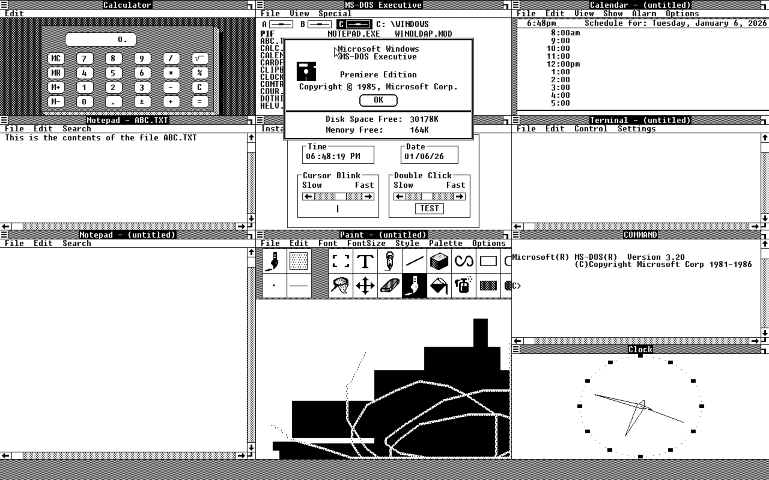 reliably with Windows 1.00 “Premiere Edition” (at least in common emulation setups).